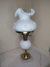 Fenton Milk Glass Cabbage Rose Desk Lamp White Ruffled Glass Marble Vintage