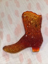 Vintage FENTON Amberina Glass Daisy and Button boot glows W/Light Orange Red $