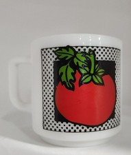 vtg Milk Glass coffee tea Mug Double Sided POP ART Tomato Print D Handle 10 OZ