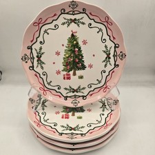 4 Potter's Studio CHRISTMAS TREE PINK Salad Plates 8.75" Ceramic Bows Set Of 4