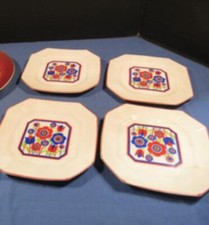 SET/4 1980s Fujimori Kato KOGEU POP ART JAPAN Salad Plates EUC 8 3/4"