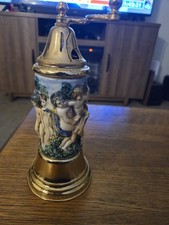 Vintage German Beer Stein Music Box Berlin Pewter Lid 9.5" Ceramic