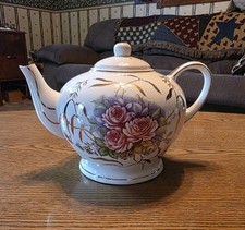 Vintage Porcelain Music Box Teapot Floral with Gold Trim (plays Tea For Two)