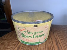 Spanglers Candy Cardboard Shipping Tub Vintage Advertising Opera Cremes Box Can