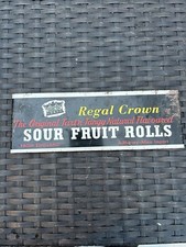 VTG Regal Crown Sour Fruit Rolls Advertising Sign 3”x8.5” Candy Mancave England