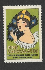 Vintage Poster Stamp Label Advertising DM WOODARD CANDY FACTORY Fort Dodge IA