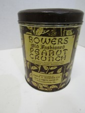 OLD VINTAGE BOWERS OKD FASHION PEANUT CRUNCH TIN CAN ADVERTISING