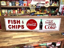 Huge Coca Cola Fish n Chips Milk Bar Sign 100cm Retro Vintage Old Advertising