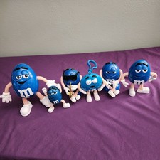 Vintage M&M Blue Candy Bendy Bendable 6.5" With misc other blue m&m lot of 6