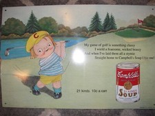 VTG CAMPBELL'S SOUP TIN METAL SIGN #20 1993 EMBOSSED ADVERTISING GOLFING KID EUC