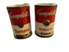 2 Vintage Mini Campbells Soup Can Toys Lot of 2 Tomato and Wonton RARE