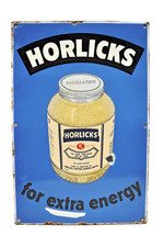 Vintage Horlicks Porcelain Enamel Sign 18x12in Advertising Board Milk Drink Ener