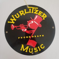 Wurlitzer Phonograph Music Record Tin Porcelain Advertising Sign 11.5"