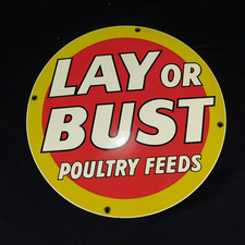 VTG Lay or Bust Poultry Feeds 11 1/4" Porcelain Enameled Advertising Metal Sign