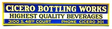 Vintage Old Cicero Bottling Works Beverage Advertising Sign, 1930s, Soda Chicago
