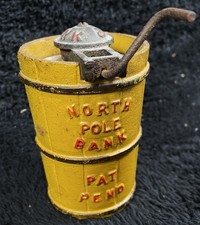 Antique Cast Iron North Pole Bank Ice Cream Freezer Still Coin Bank - Nice!
