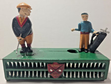 Vintage Birdie Putt Toy Golfer & Caddie Mechanical Die Cast Iron Coin Bank