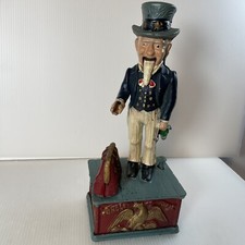 Vintage Uncle Sam Patriotic Cast Iron Mechanical 11” Coin Bank Toy