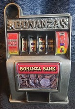 Vintage Bonanza Four Reel 11" Toy Casino Slot Machine Bank in Working Condition