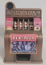 Mini Slot Machine Toy Gambling Bank Vintage Metal Reno Nevada 11"