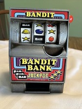 Vintage Toy Plastic BANDIT Mechanical Slot Machine & Savings Bank WORKS