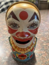 Vintage Tin Litho Toy Clown Mechanical Bank J. CHEIN CO Works