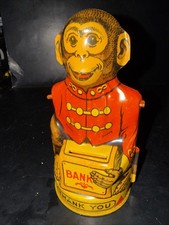 Vtg 1940's J. Chein CO. Mechanical Tin Lithographed Monkey Bank Toy 40s AS IS