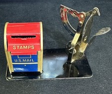 Vintage MCM 1960’s Litho Tin US Mail Post Office Mini Toy Bank Japan