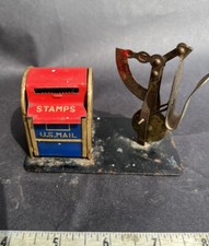 Vintage Tin Mail Box Stamp Holder Letter Scale Post Office Toy