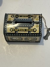 Vintage Toy Captain Kidd Coin Bank Tin Metal Treasure Chest Key & Lock, Japan