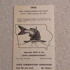 1966 Iowa Freshwater Fishing Seasons & Limits Vintage Chart Map