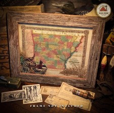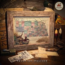 Antique Map of the 14"L x 11"W, Earthy tones, dark blues, greys, and blacks