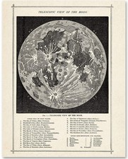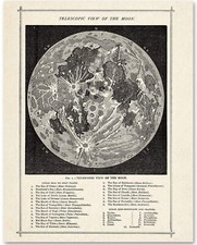 Antique Map of the Moon - 11x14 Unframed Print - Vintage Posters 14L x 11W