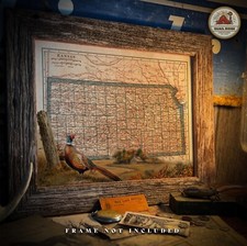Vintage Kansa State Map Art Print Pheasant Hunting Artwork Hunting Cabin Decor
