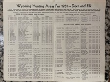 1951 Wyoming hunting areas map vintage deer elk big game rules season cheyenne