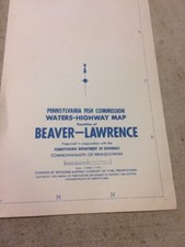 VINTAGE PENNSYLVANIA FISH COMMISSION MAP COUNTIES OF BEAVER - LAWRENCE 1958