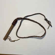 Vintage Braided Leather Cowboy Toy Bullwhip Wooden Handle - Western Collectable