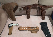 Vintage Western Toy Gun Holster Lot–Tooled Leather Belts, Double Rig, Ammo Belt