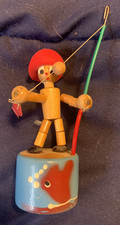 Vintage Fisherman Fly Fishing Hand-Made Wooden Push Up Collapsing Toy Merz Italy