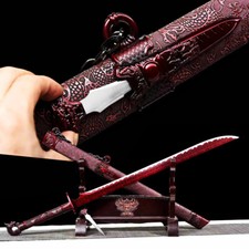 Handmade Dragon Sword Red Straight Carbon Steel Blade Chinese Tang Dao Katana