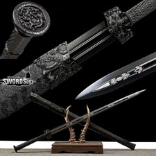 41'' All Black Chinese Jian Double Edged Dragon Sword 1095 Carbon Steel Blade