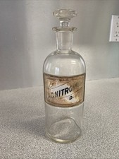 Antique Apothecary Label Under Glass 8.25” Bottle AC. NITROMUR. D. Carr-Lowrey