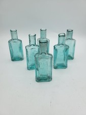 6 Antique ? Aqua Medicine Glass Bottle Apothecary Glow With UV