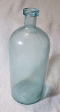 ANTIQUE AQUA GLASS APOTHECARY MEDICINE BOTTLE 7-1/4" TALL