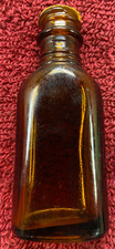 Antique Vintage small brown amber glass medicine bottle apothecary 5”