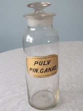 antique Glass Apothecary Pharmacy Bottle "Pulv Pin .Canad w/ gold glass label