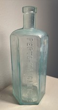 Vintage Antique Glass Pepto Mangan Gude 6 Sided Aqua Medicine Bottle 7” Tall