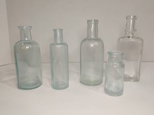 Antique Aqua Glass Medicine Apothecary Bottles Set of 5 Vintage