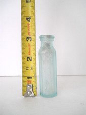 Antique Aqua Glass Bottle 3" 12 Sided