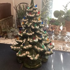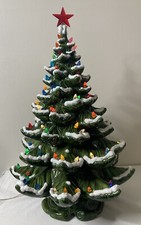 Vintage 70's 19” Ceramic Lighted Christmas Tree W/Music Box Many Bulbs